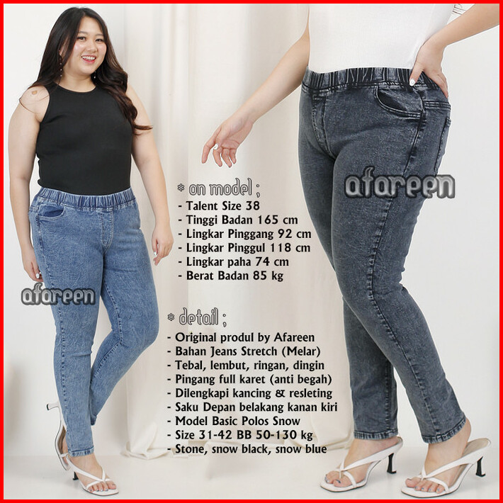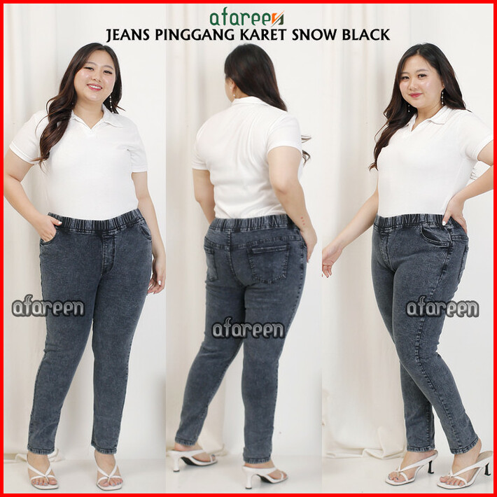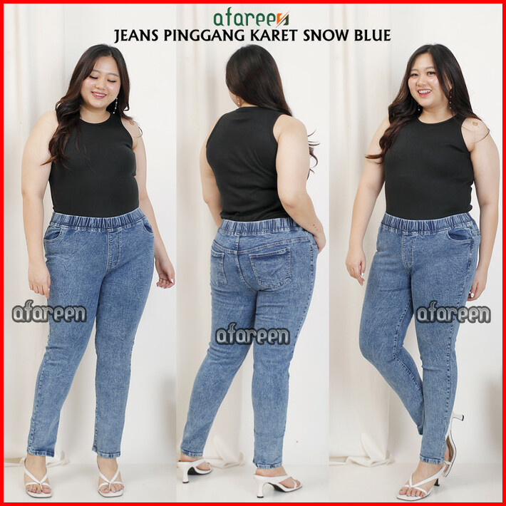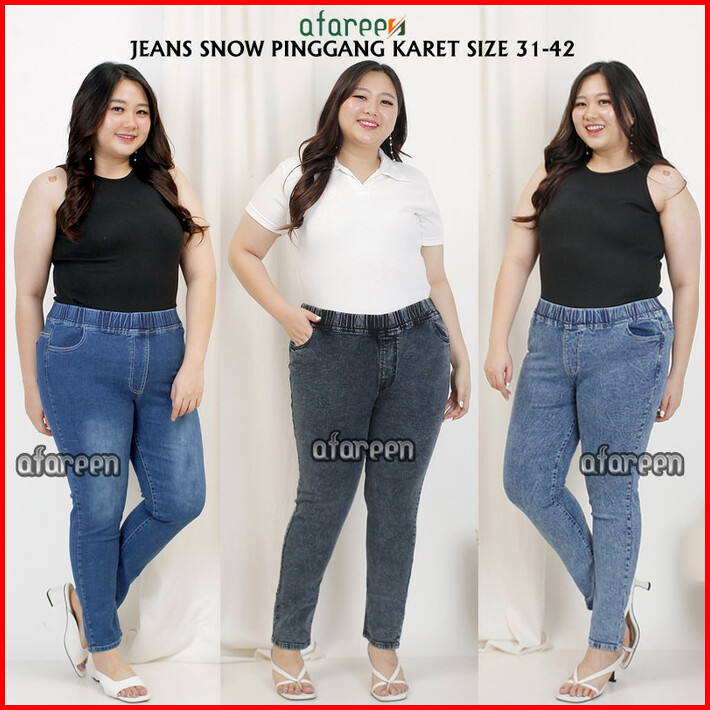 Celana Panjang Jeans Wanita Snow Legging Jeans Pinggang Karet Jumbo
