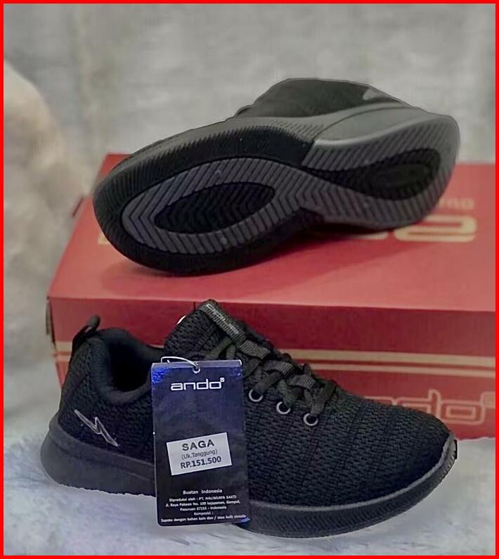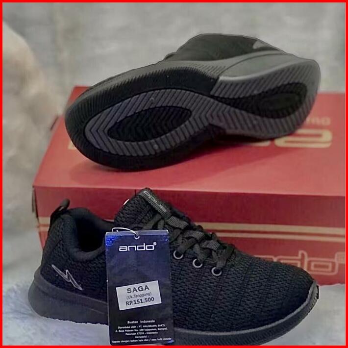 Promo Sepatu Ando Saga-bsc Tali Uk 33-40 Hitam Putih-hitam Hitam Sneakers Anak Sekolah Fashion