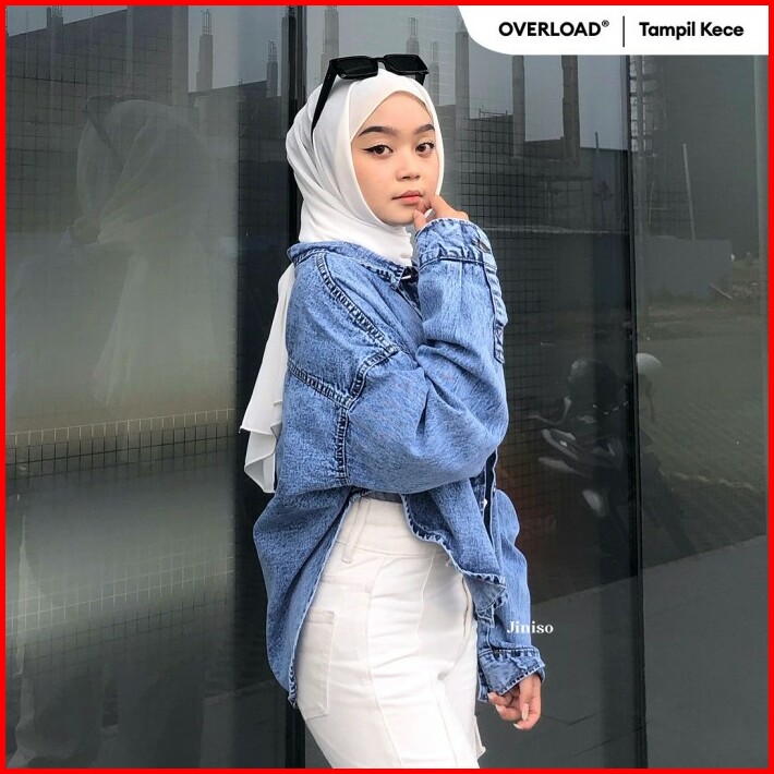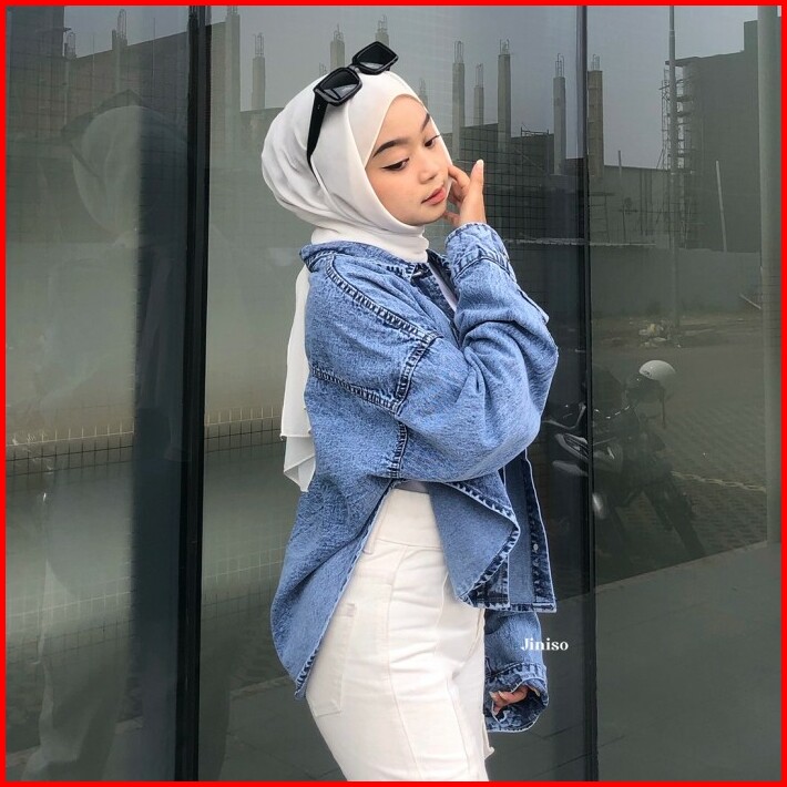 Jiniso Jaket Crop Jeans Oversize Belle Basic Blue Acid