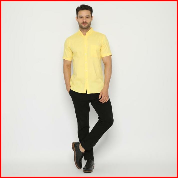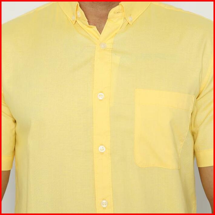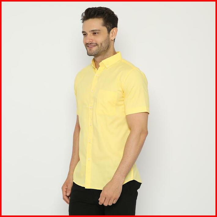 Platini Kemeja Pria Polos Oxford Pendek Kuning 1069