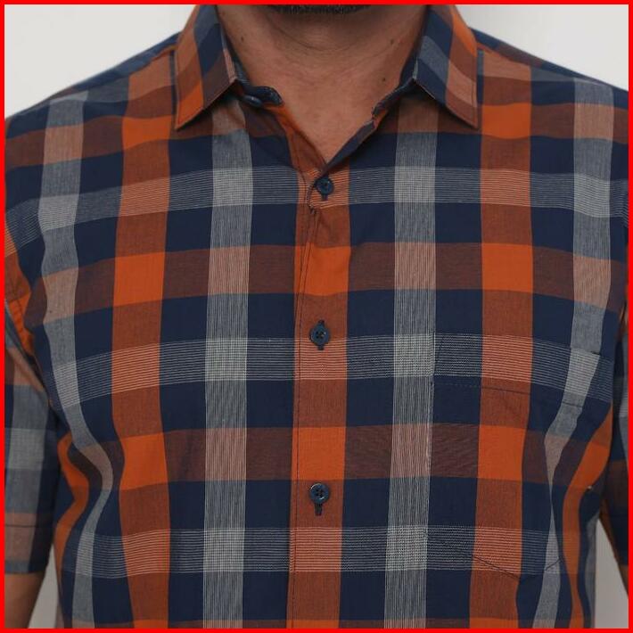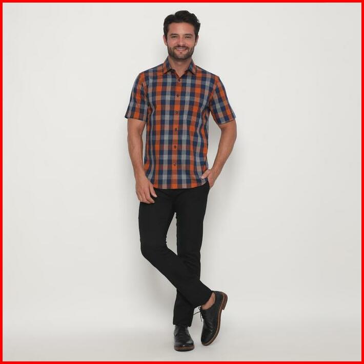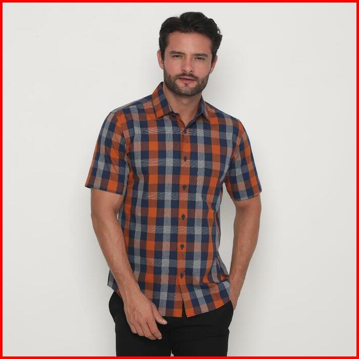 Platini Kemeja Kotak Pria Lengan Pendek Katun Orange 73385