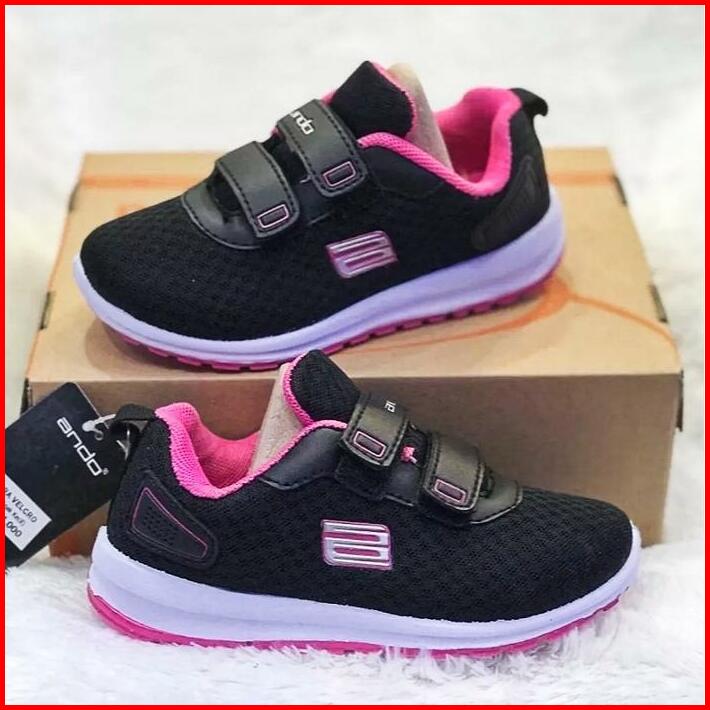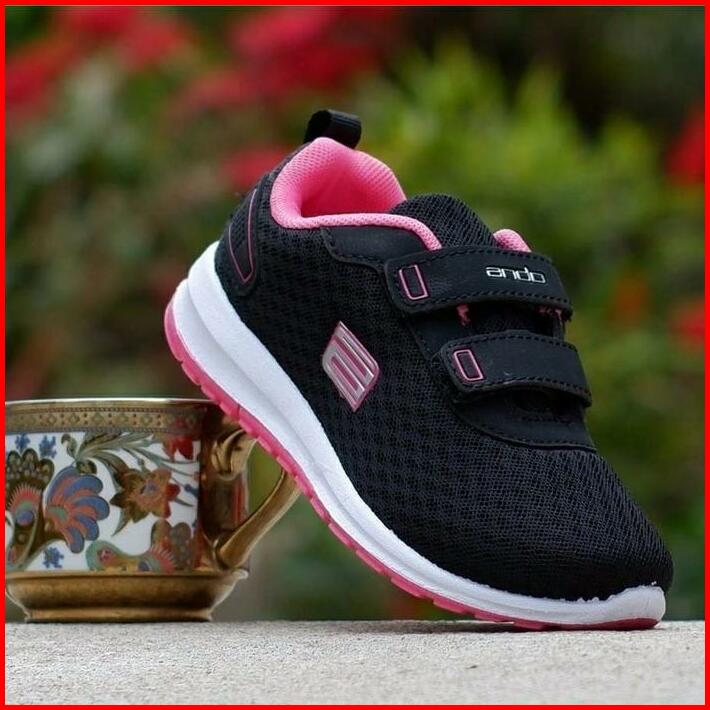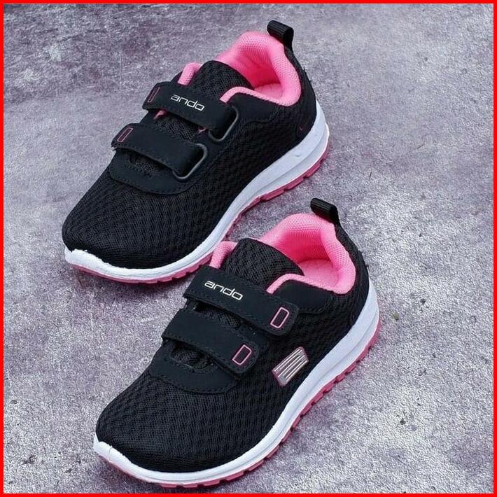 Sepatu Sekolah Anak Perempuan Ando Zora Hitam Pink Paud Tk Sd Kets Perekat Fashion