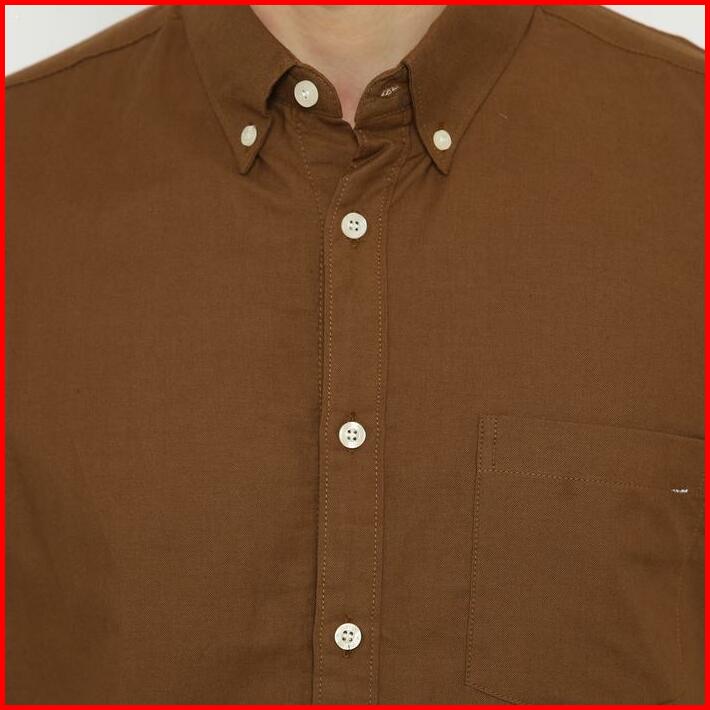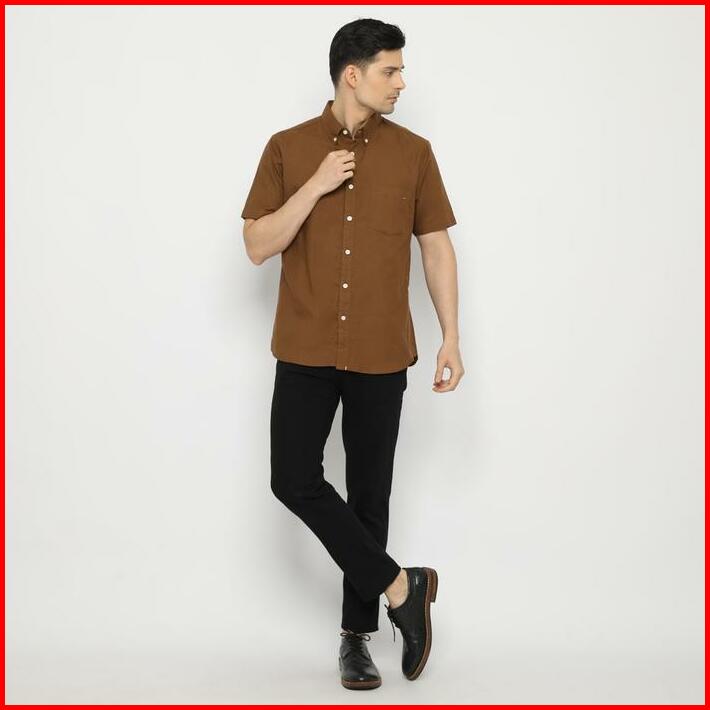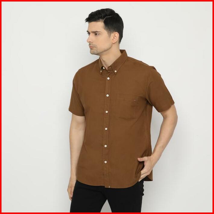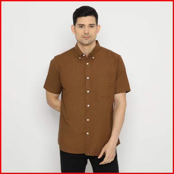 Platini Kemeja Pria Lengan Pendek Basic Katun Oxford Coklat 63217