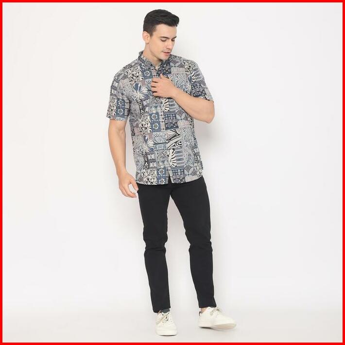 Platini Kemeja Hawai Pria Lengan Pendek Biru Abu 132106