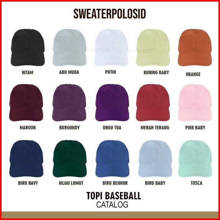 HITAM, ABU MUDA, BIRU BENHUR, BIRU NAVY, BURGUNDY, HIJAU LUMUT, TOSCA, MERAH MARRON, UNGU TUA, CREAM, PUTIH