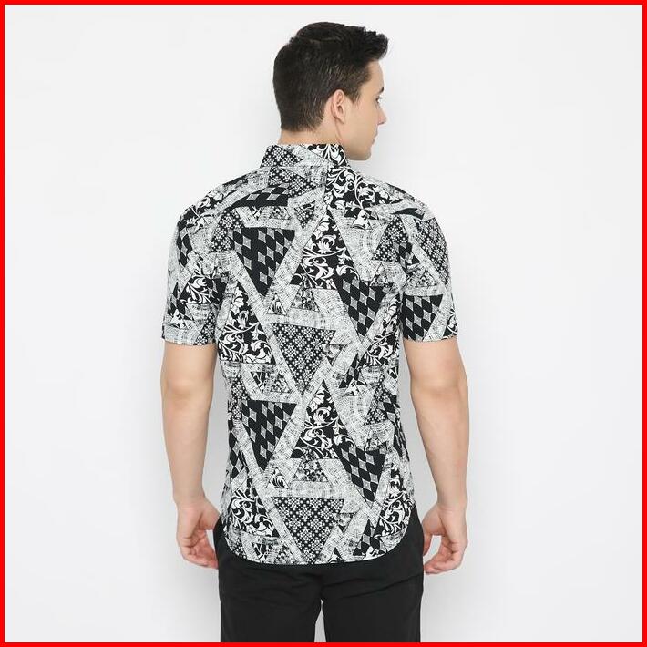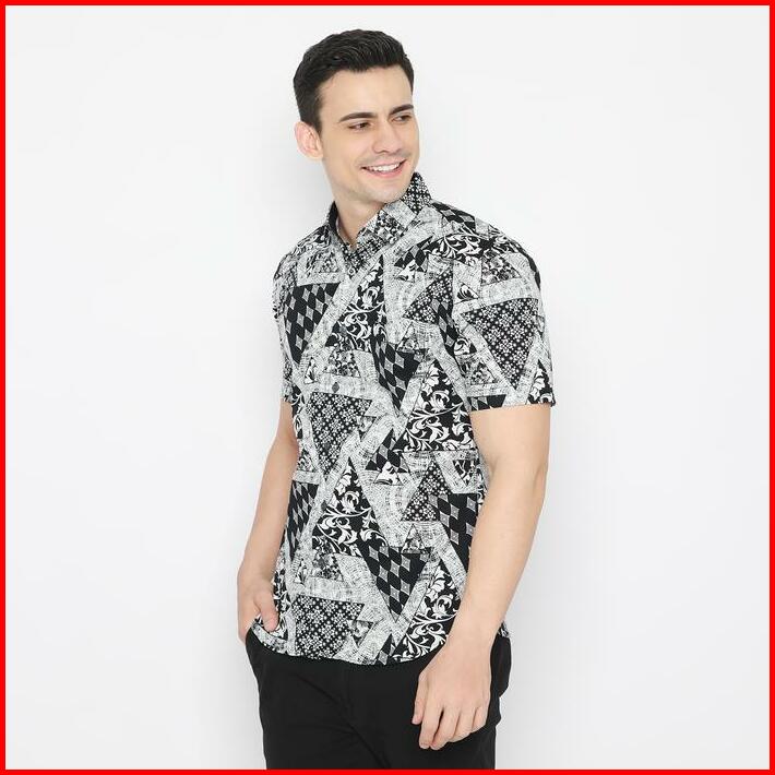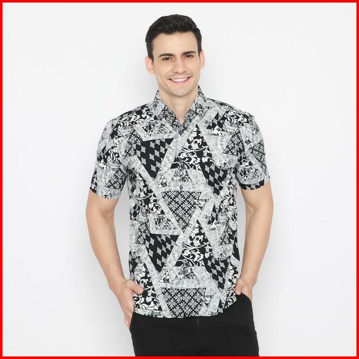 Platini Kemeja Batik Pria Lengan Pendek Katun Hitam 73171