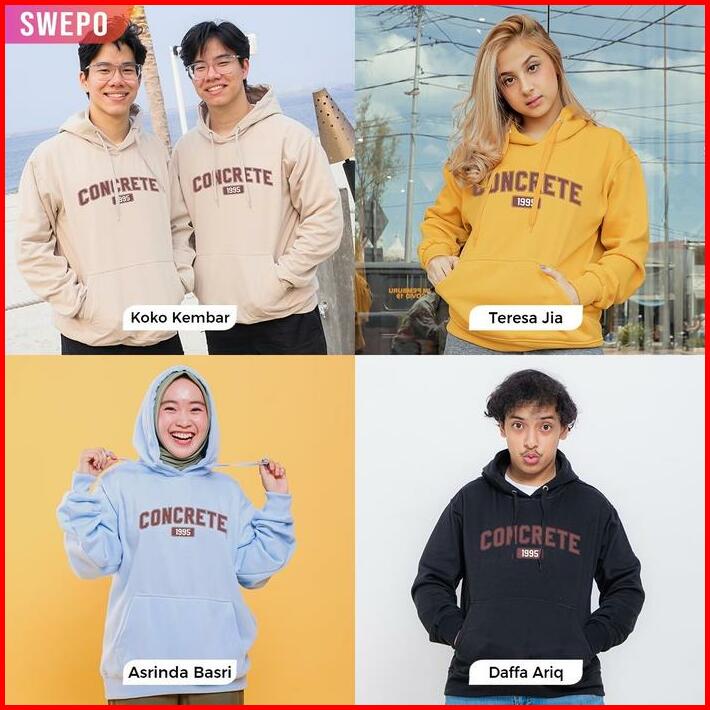 Swepo Hoodie Jumper Concrete Bordir Size M-xxxl Pria Wanita Fleece Lokal