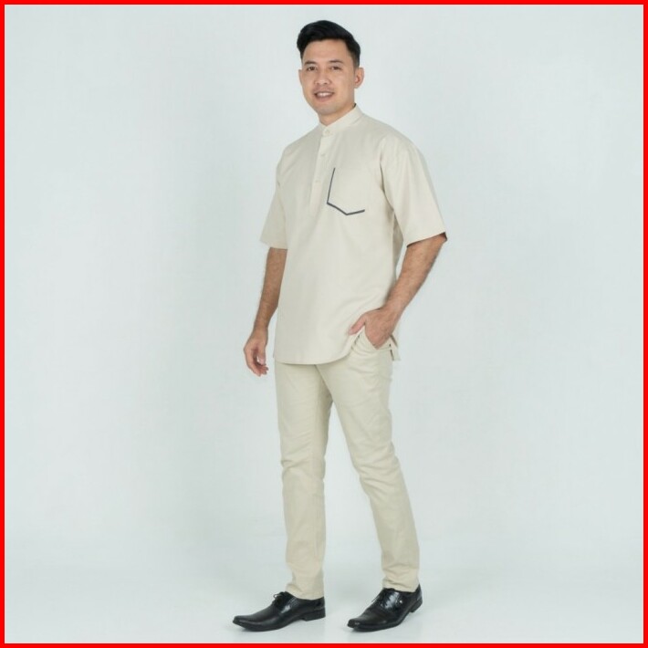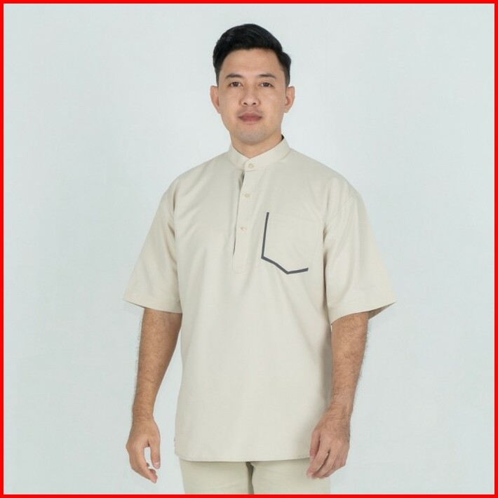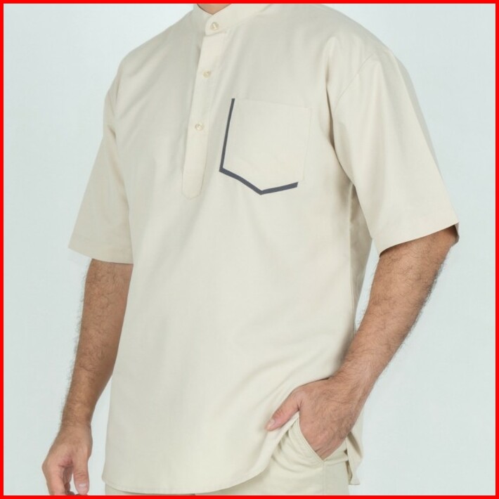 Benhill Baju Koko Pria Qurta Kurta Stripe Pendek Beige 29980-3291h