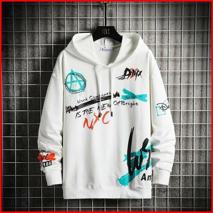 Hoodie Pria Wanita Mode Grafis Sweatshirt Harajuku Oversize Fleece Sweater Tebal Tangan Panjang