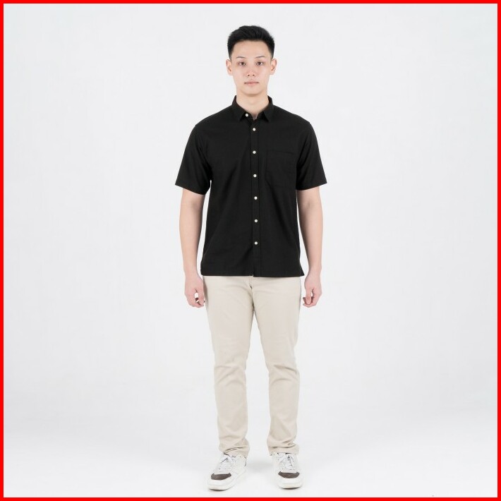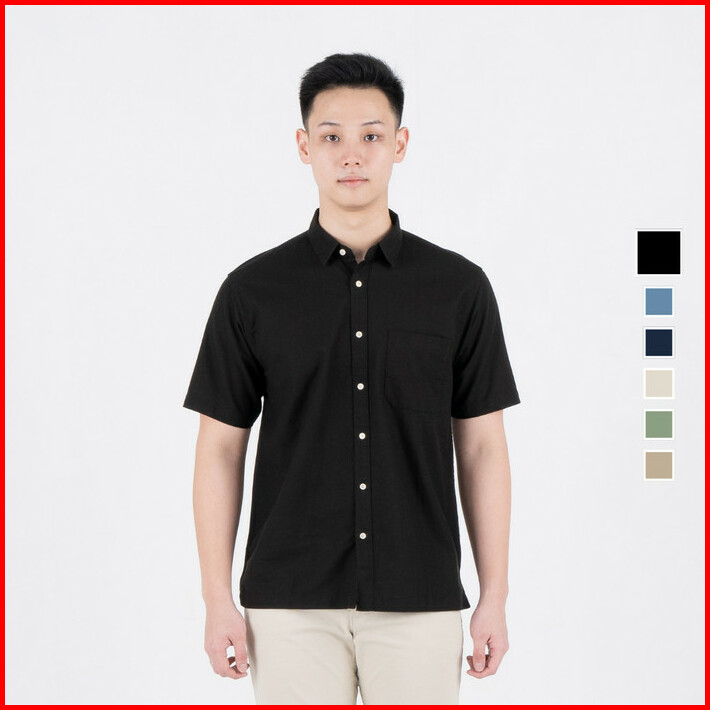 Benhill Kemeja Pria Linen Lengan Pendek Black 25785-16202
