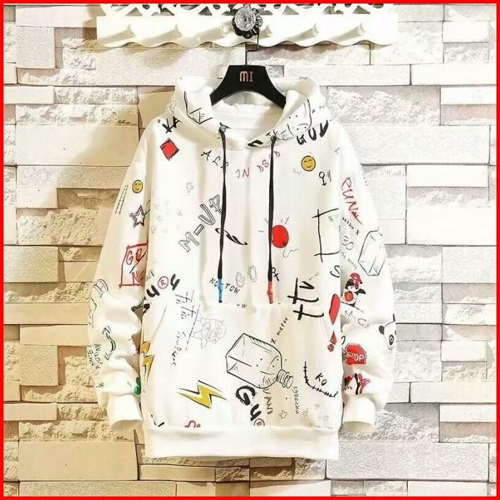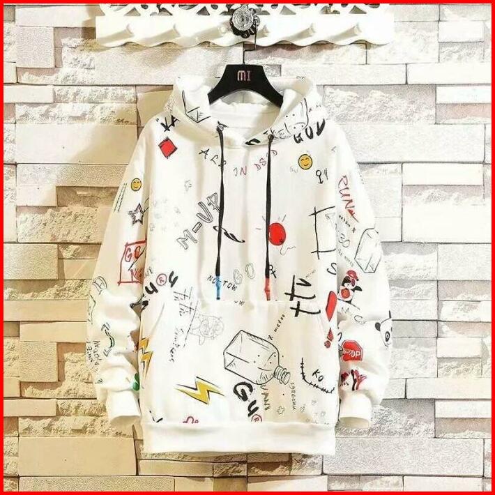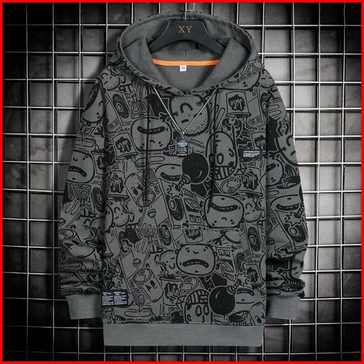 Hoodie Sweter Distro Pria Wanita Full Print Abu Sweater Panjang Nyaman Unisex