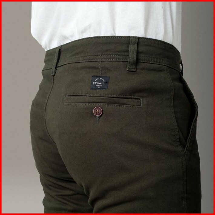 Benhill Celana Chino Panjang Pria Katun Stretch Hijau Army 108-109
