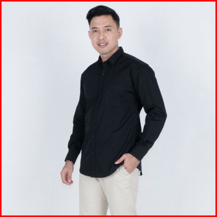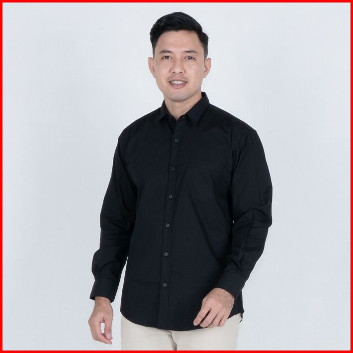 Benhill Kemeja Pria Basic Panjang Katun Poplin Hitam 27357-58