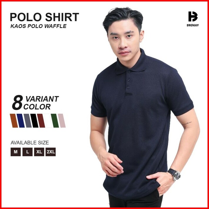 Broguy Kaos Polo Shirt Pria Waffle Navy