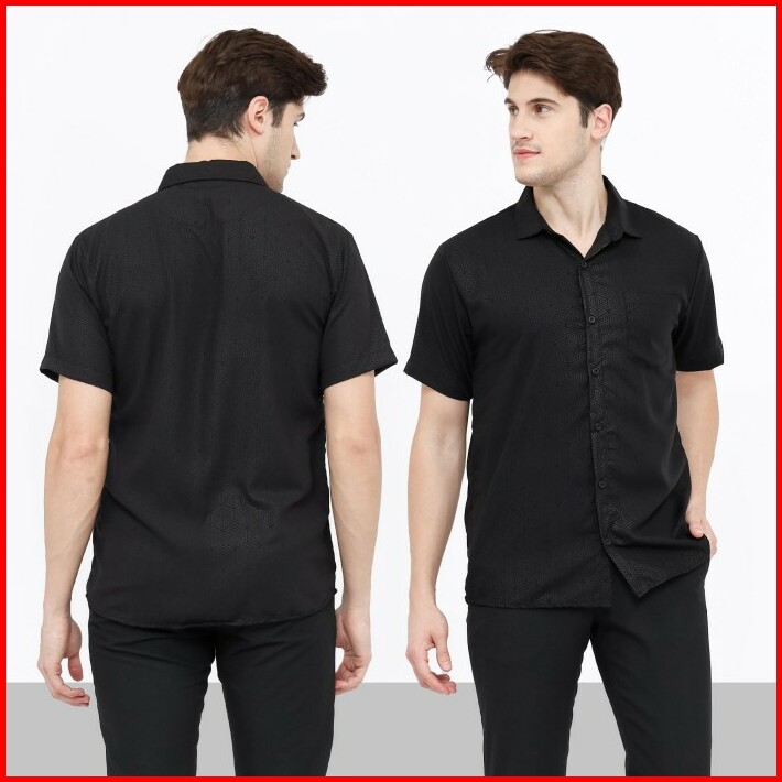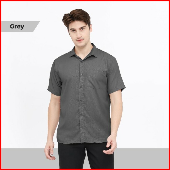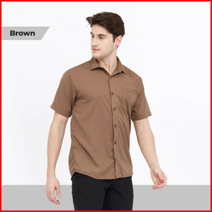 Broguy Kemeja Pria Lengan Pendek Slimfit Motif Embos