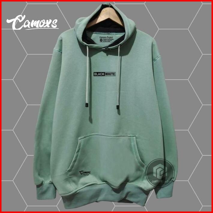 Hoodie Pria Distro Oversize Sweater Hijau Mint List Sablon Black White Hudi Cowok Terbaru Masa Kini Brand Lokal Kota Ban