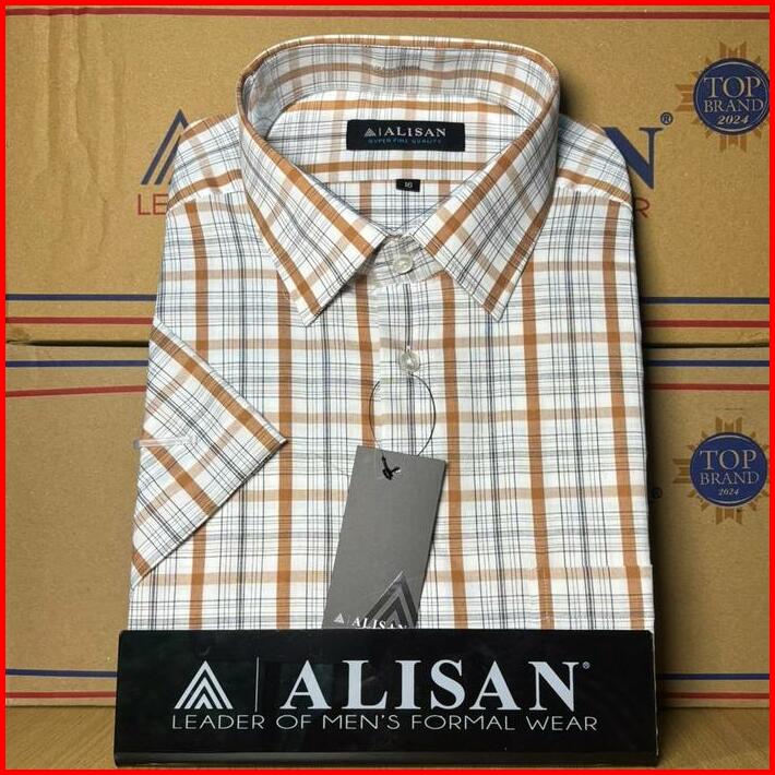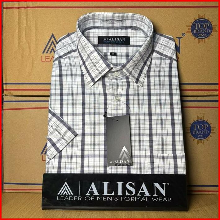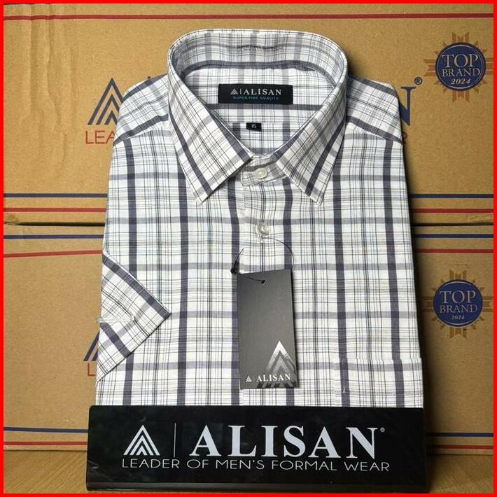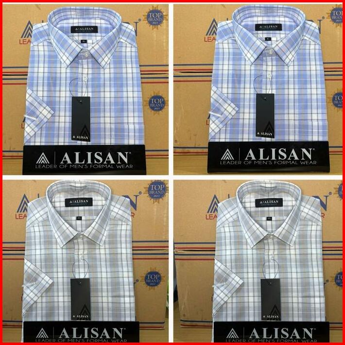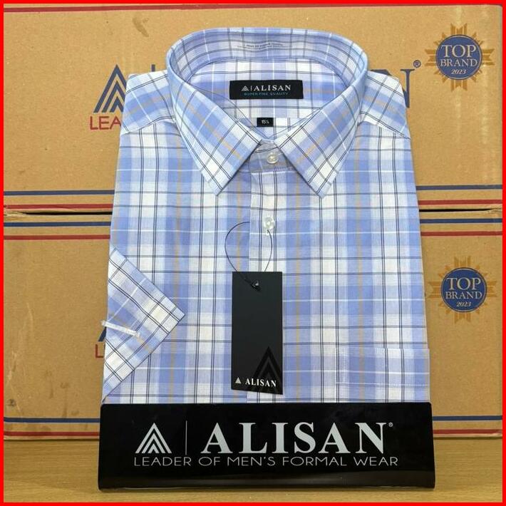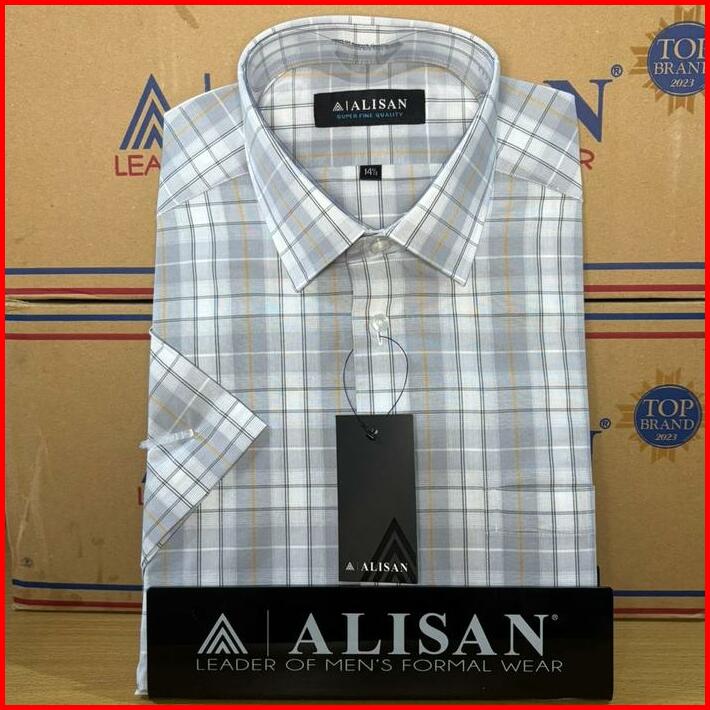 Kemeja Alisan Motif Lengan Pendek Reguler Abu Dan Baby Blue Lembut Nyaman