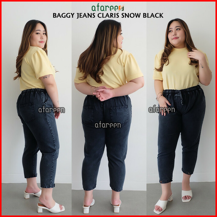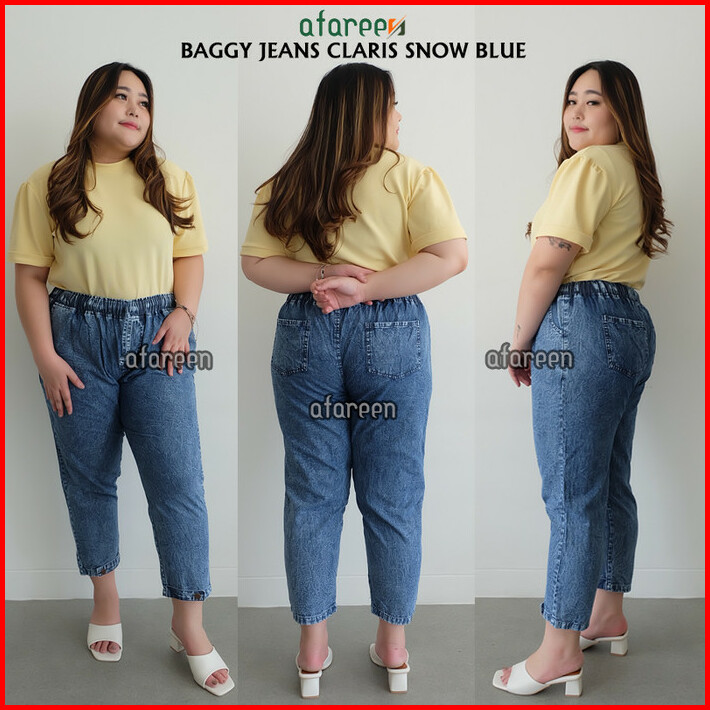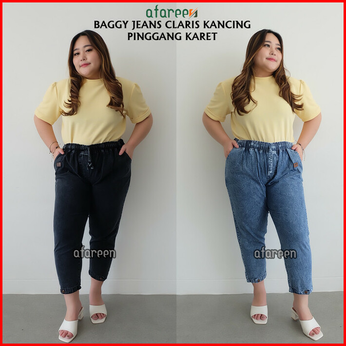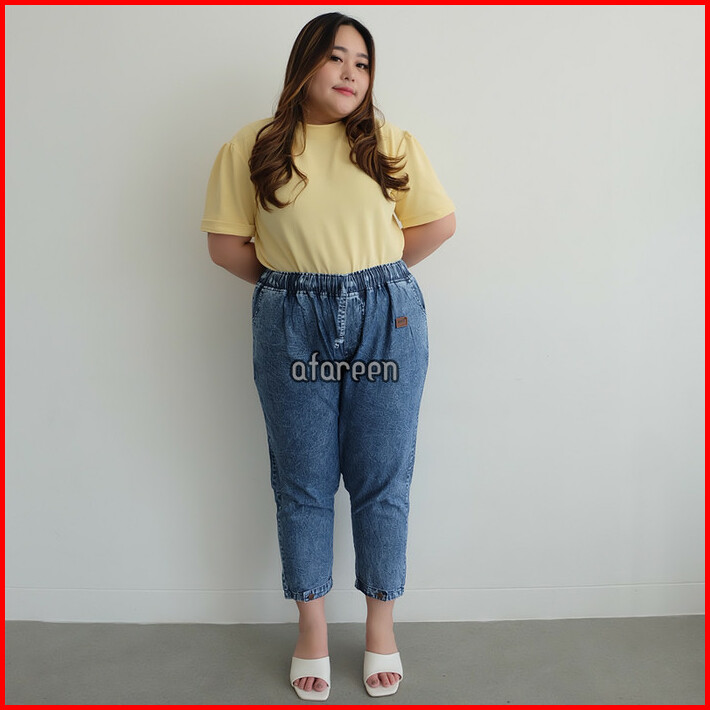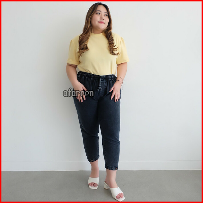 Celana Kulot Jeans Jumbo Pinggang Karet Boyfriend Jeans Pinggang Kolor
