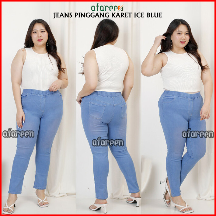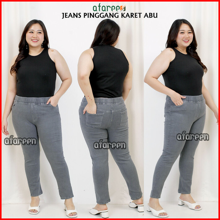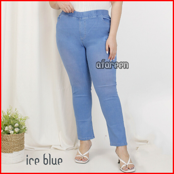 Celana Jeans Wanita Legging Jeans Pinggang Karet Melar Jumbo 35-42