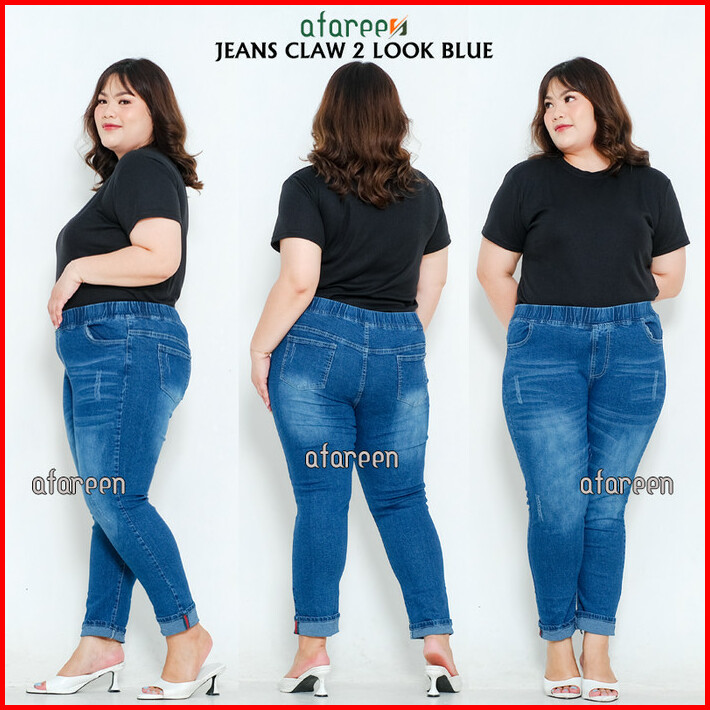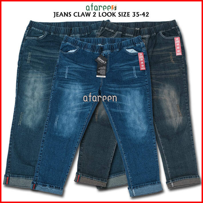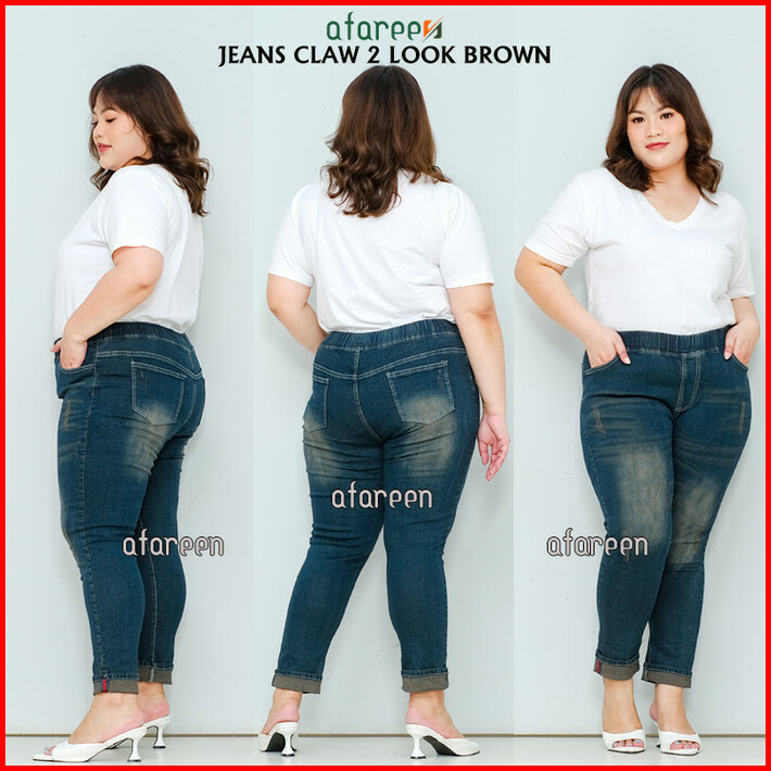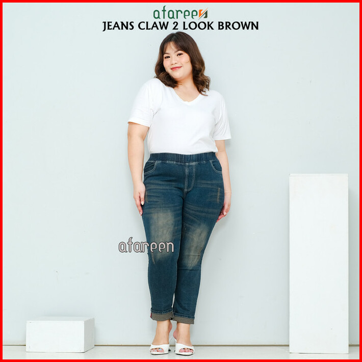 Celana Panjang Wanita Claw Brown Pinggang Karet Soft Jeans Melar Jumbo