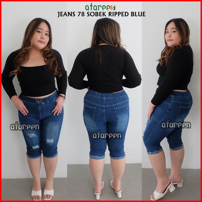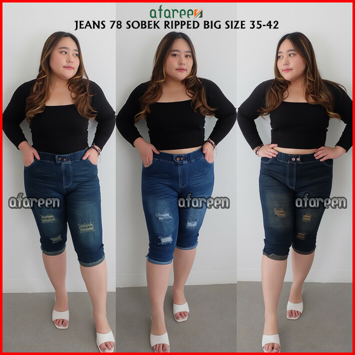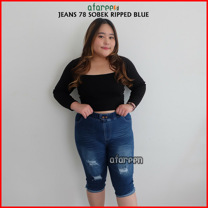 Celana Jeans 7 8 Wanita Jumbo Pinggang Karet Jeans 78 Sobek Stretch