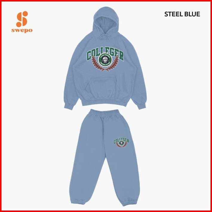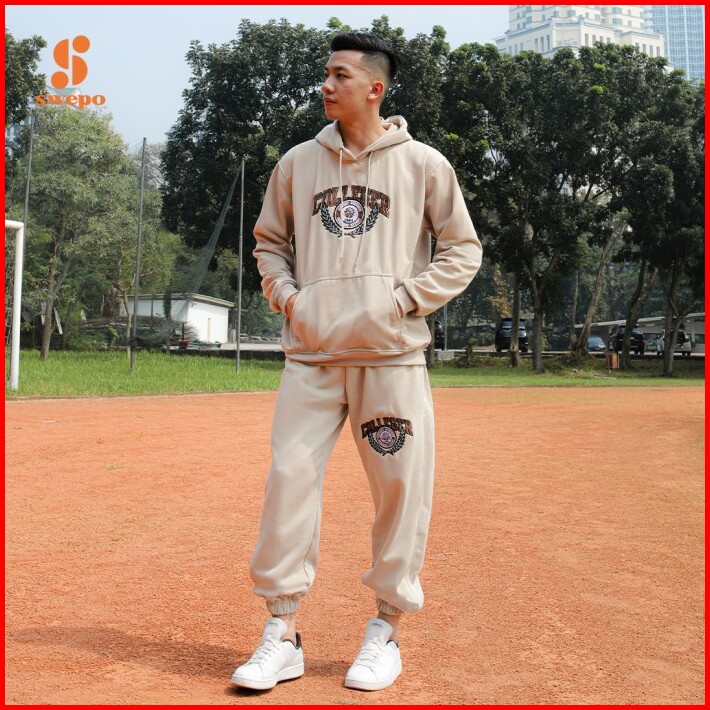 Swepo Satu Set Hoodie Jumper Jogger Colleger Size M-xxl Pria Wanita