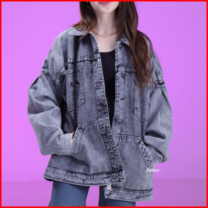 Jiniso Jaket Jeans Oversize Pocket Atlas Snow Grey