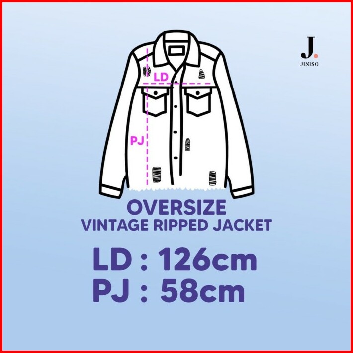 Jiniso Ripped Jaket Jeans Oversize Vintage Blue Acid