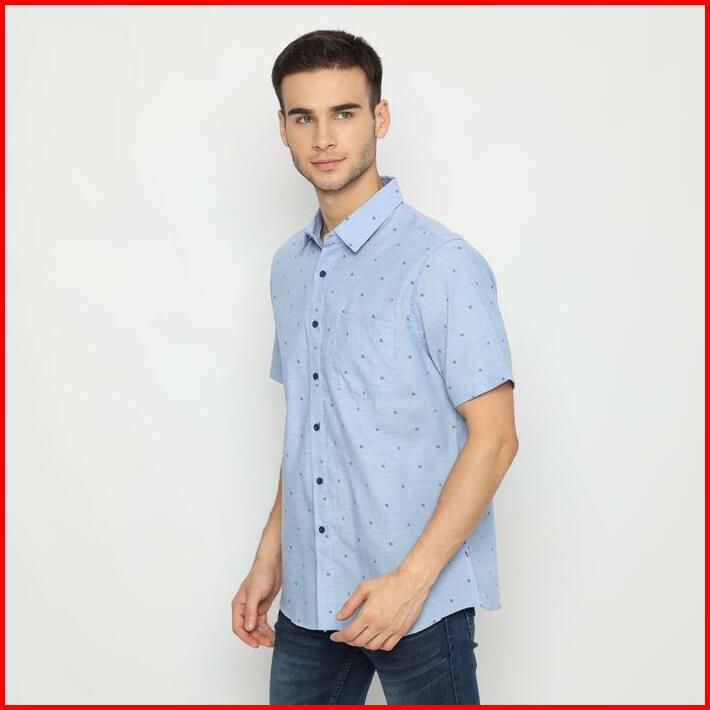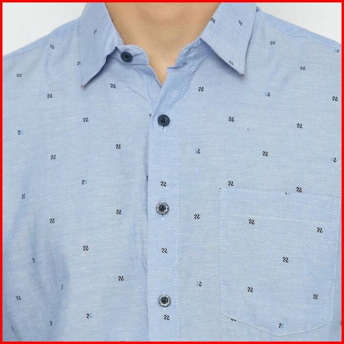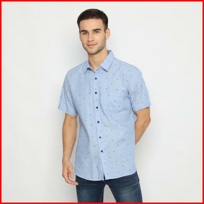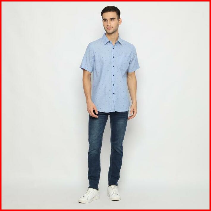 Platini Kemeja Pria Motif Lengan Pendek Biru 132040