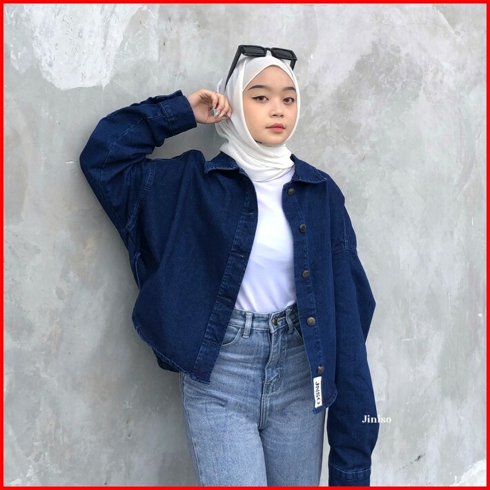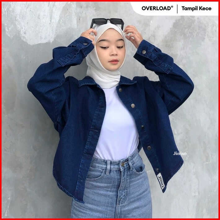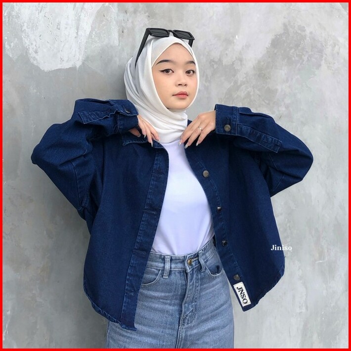 Jiniso Jaket Crop Jeans Oversize Belle Basic Blue Black
