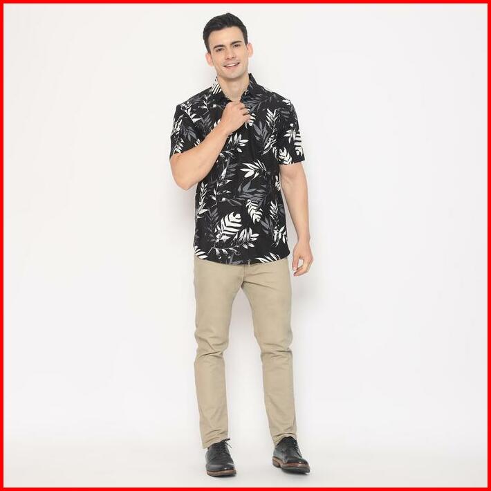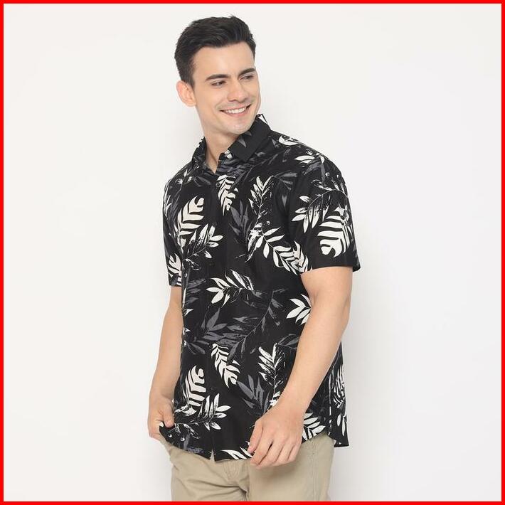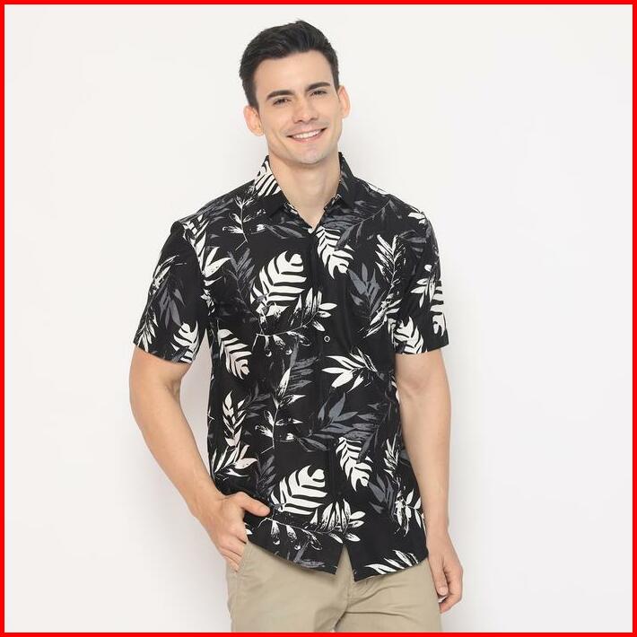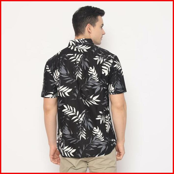 Platini Kemeja Motif Hawai Pria Lengan Pendek Katun Hitam 132057