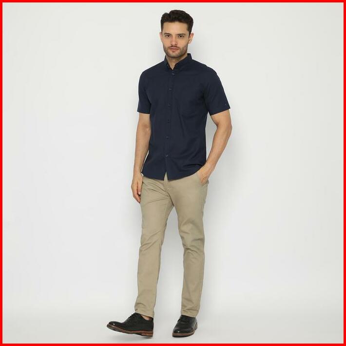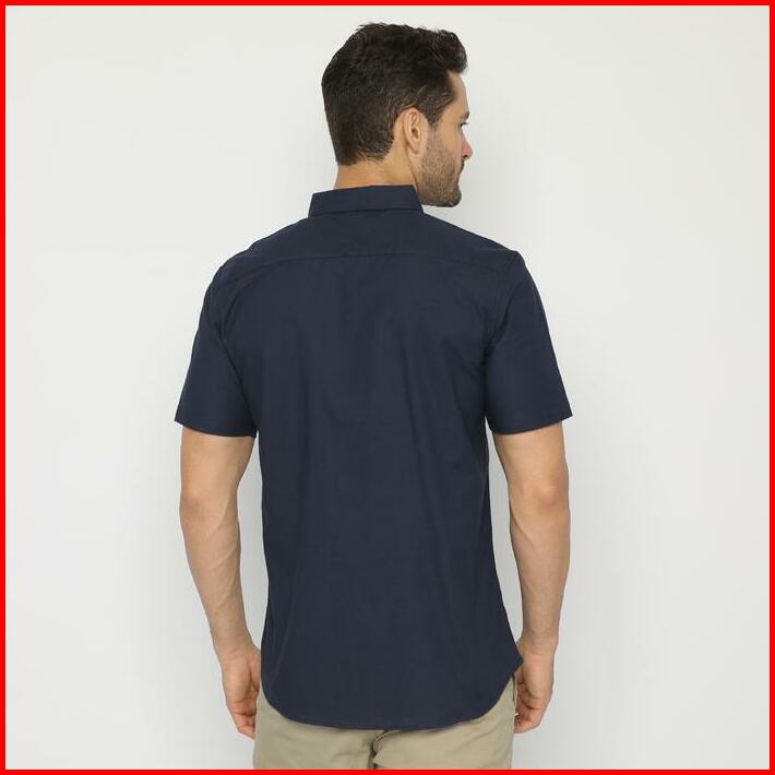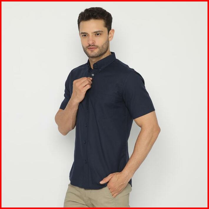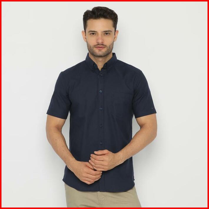 Platini Kemeja Pria Lengan Pendek Basic Katun Oxford Navy 63212