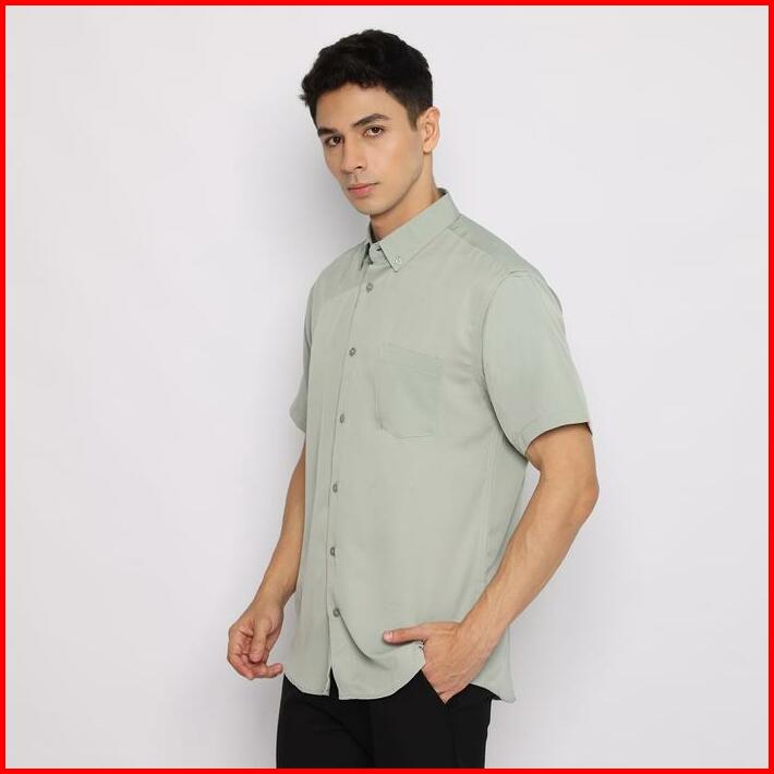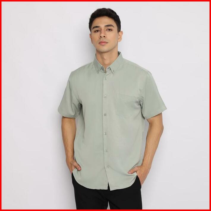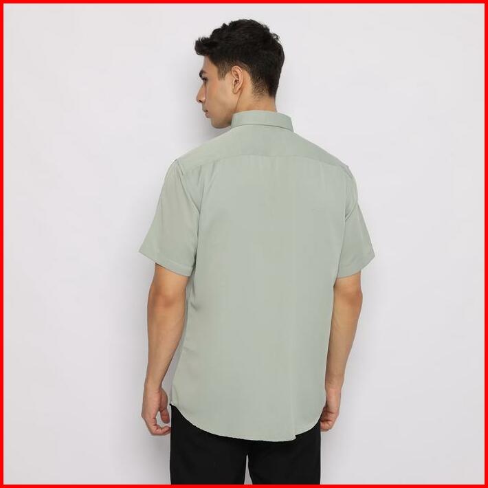 Platini Kemeja Pria Polos Lengan Pendek Polinosic Hijau Sage 63248