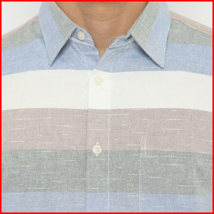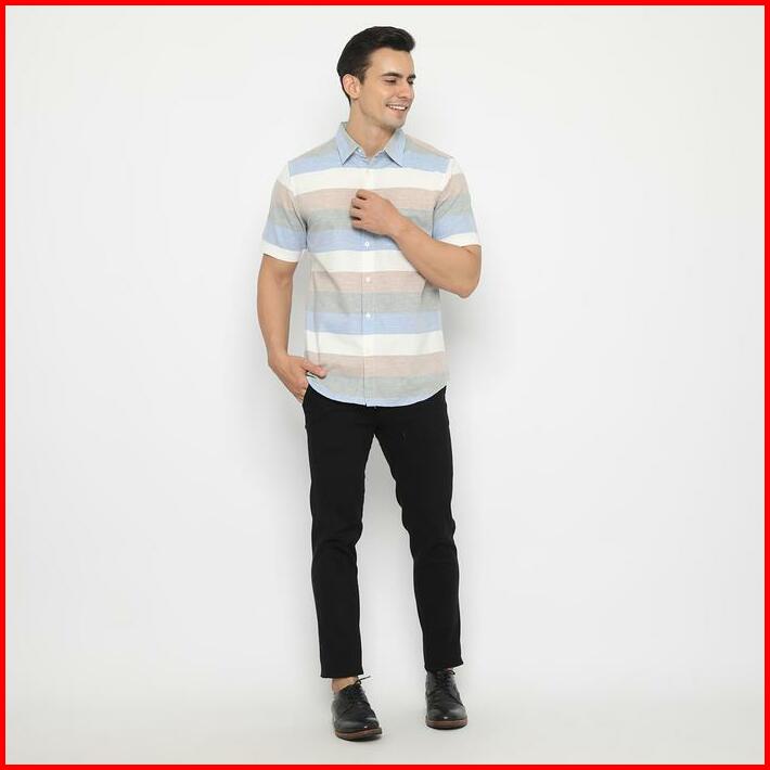 Platini Kemeja Motif Salur Pria Lengan Pendek Katun Oxford Biru 73286