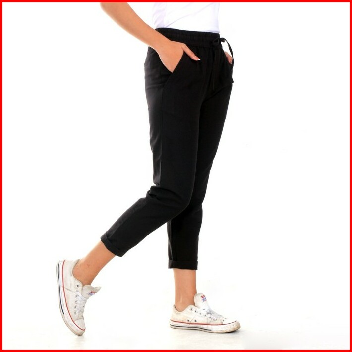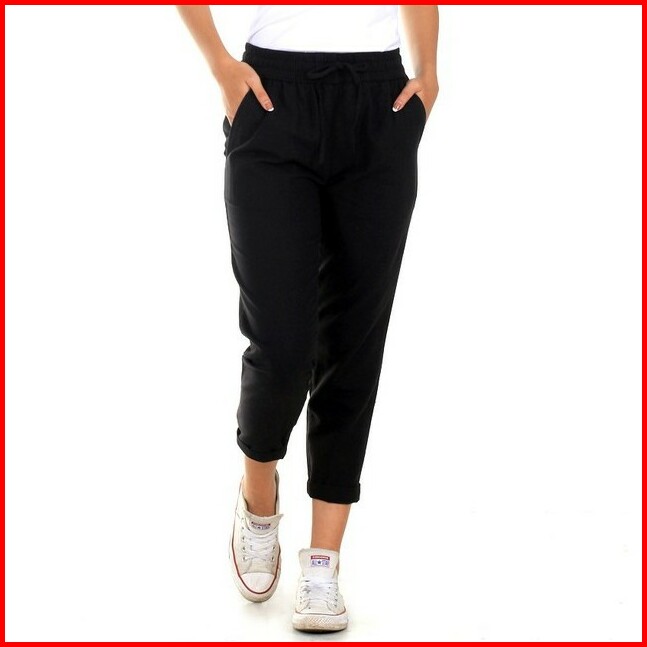 Benhill Celana Casual Harem Wanita Bahan Linen Hitam 0677-16227