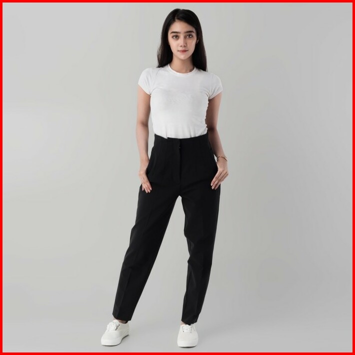 Benhill Celana Aerum Wanita High Waist Pants Pocket Black 853-39245