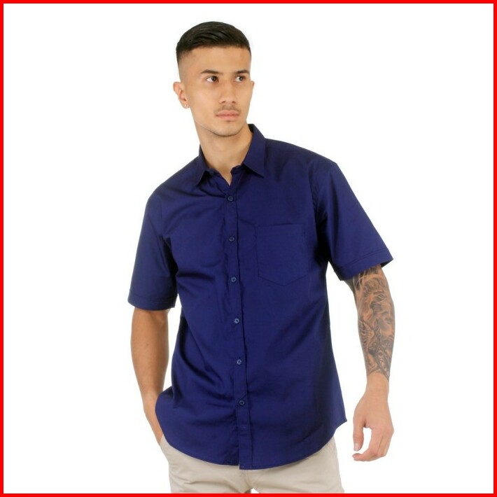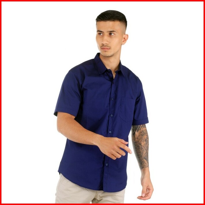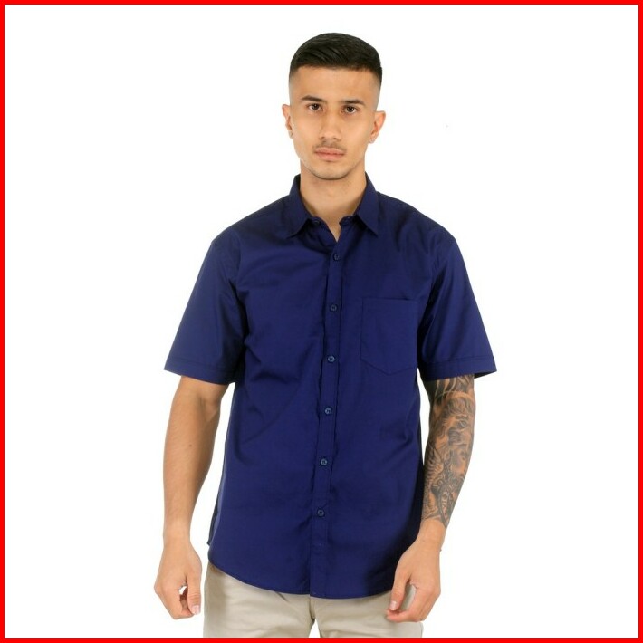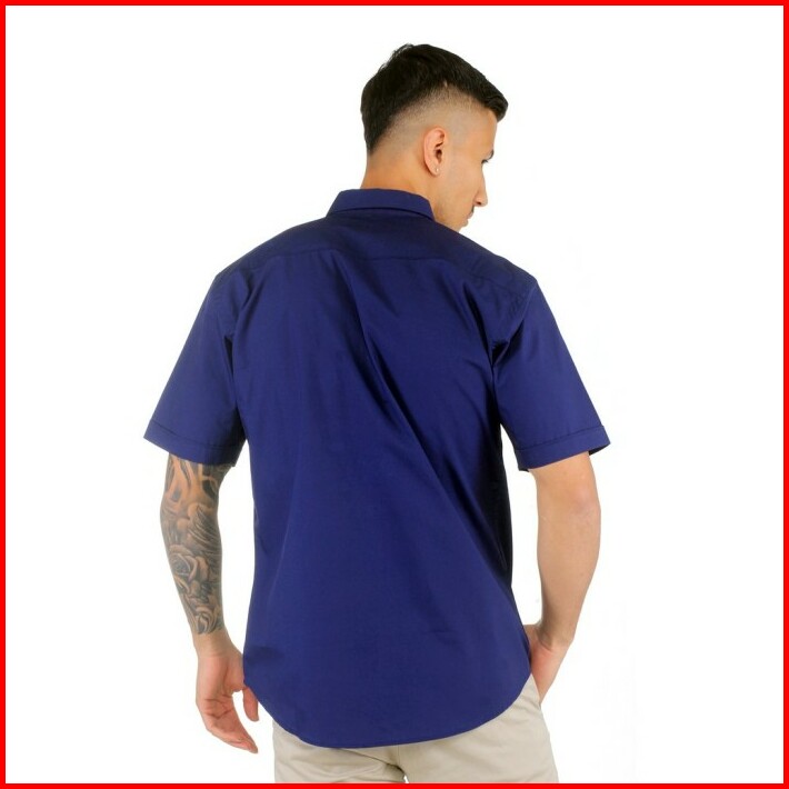 Benhill Kemeja Pria Basic Polos Pendek Katun Poplin Biru 27363-64