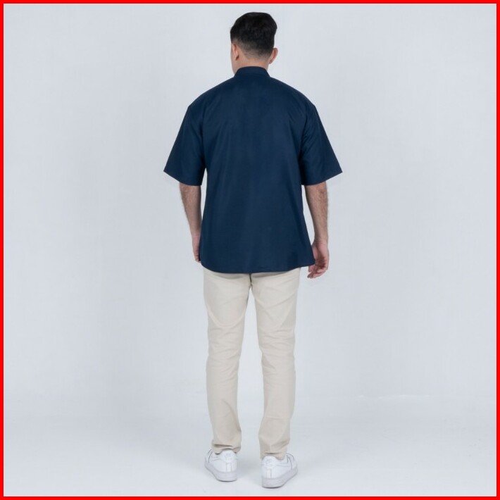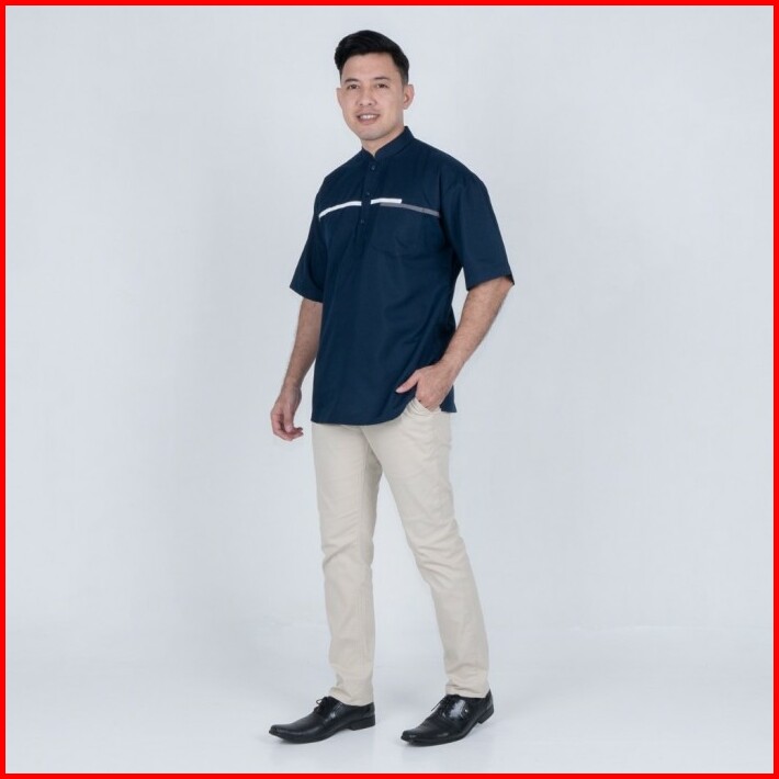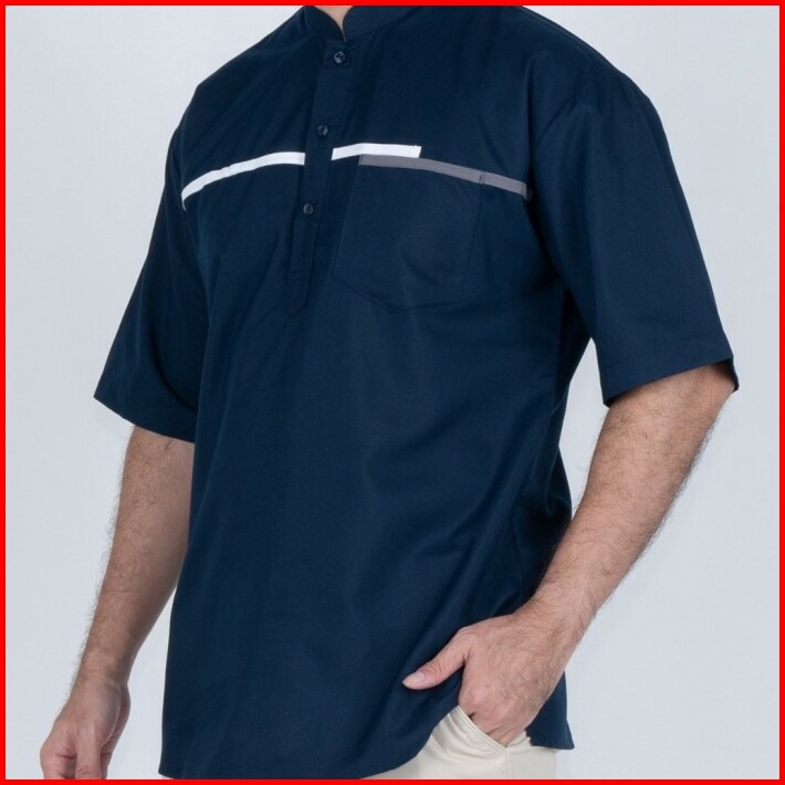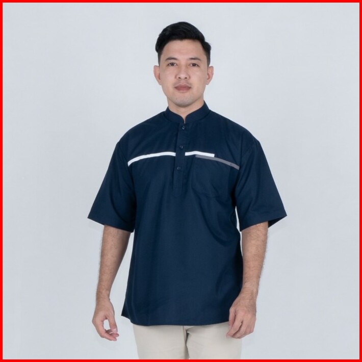 Benhill Baju Koko Pria Qurta Kurta Stripe Pendek Navy 51088-32g1h