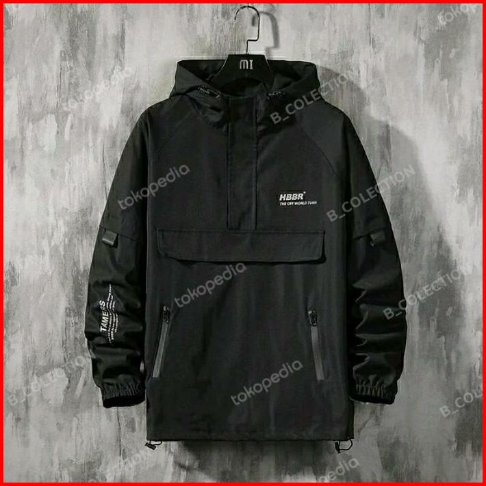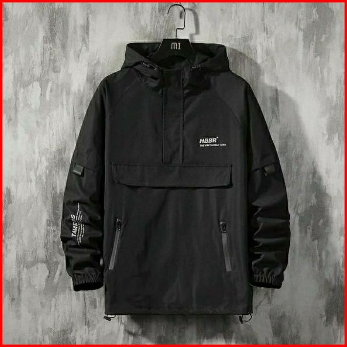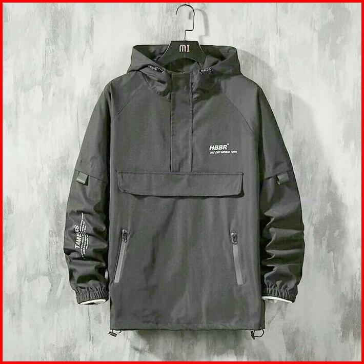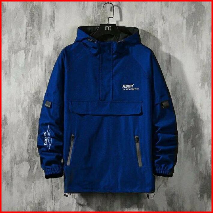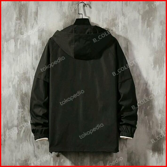 Jaket Cagoule Jaket Kantong Doraemon Waterproof Pria Wanita Distro Logo Sablon Panjang Zipper