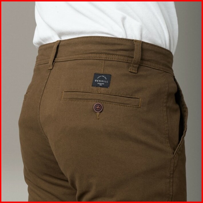 Benhill Celana Pria Panjang Chino Katun Stretch Warna Mocca 149-150