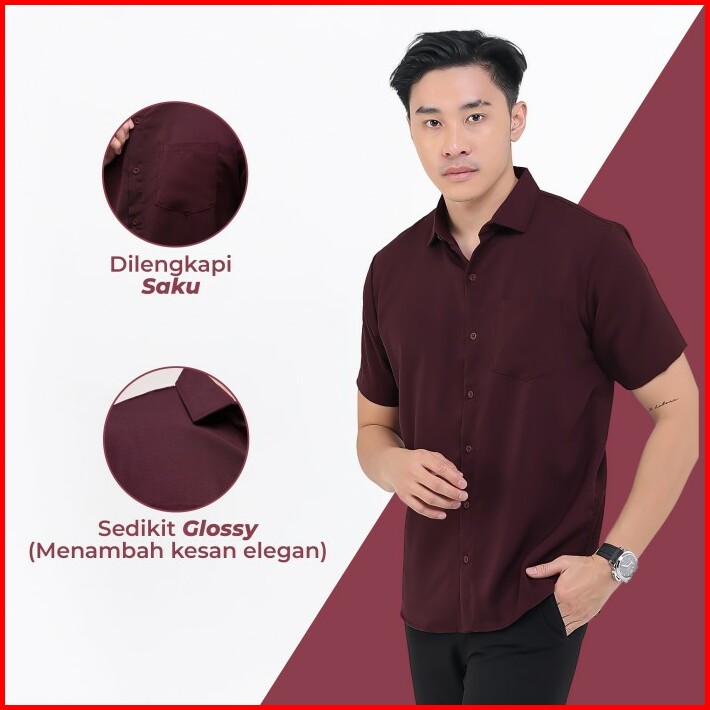 Broguy Kemeja Pria Lengan Pendek Formal Basic Maroon