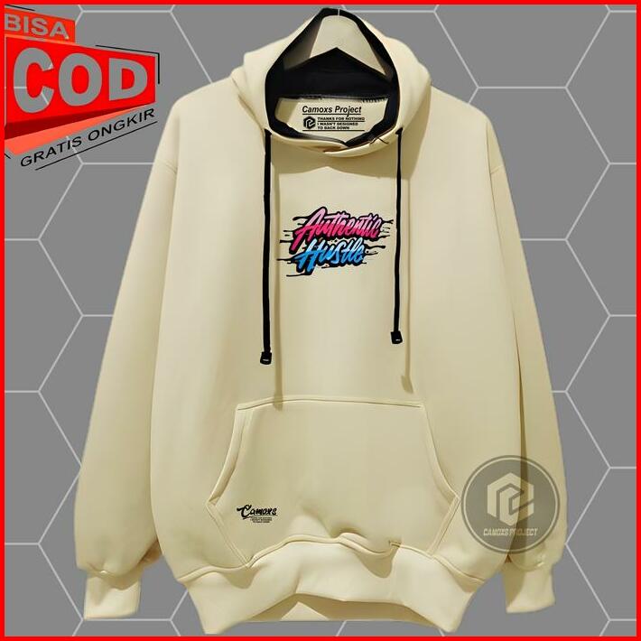 Jaket Hoodie Pria Distro Keren Camoxs Sweater Cowok Aesthetic Graffity Simple Warna Light Cream List Authentic Hustle Ho