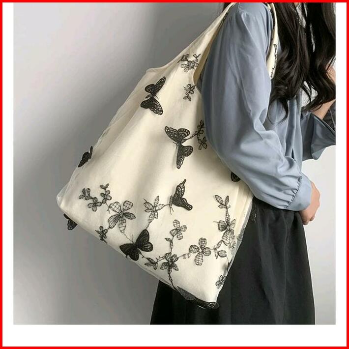 Totebag Butterfly Kanvas Bermotif Kupu-kupu Embroidered Timbul Wanita