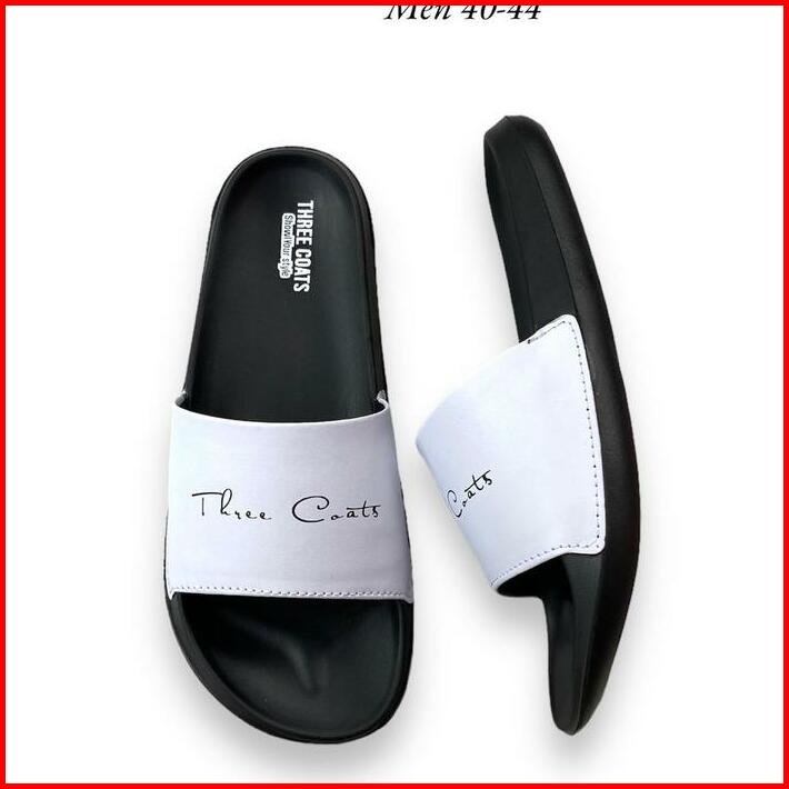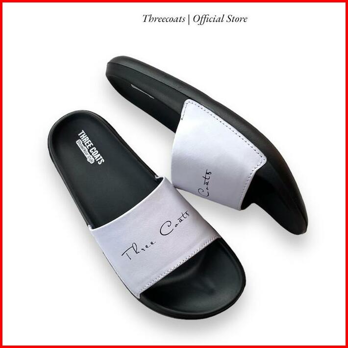 Threecoats Cursive White Sandal Slop Pria Sandal Slide Pria Sandal Pria