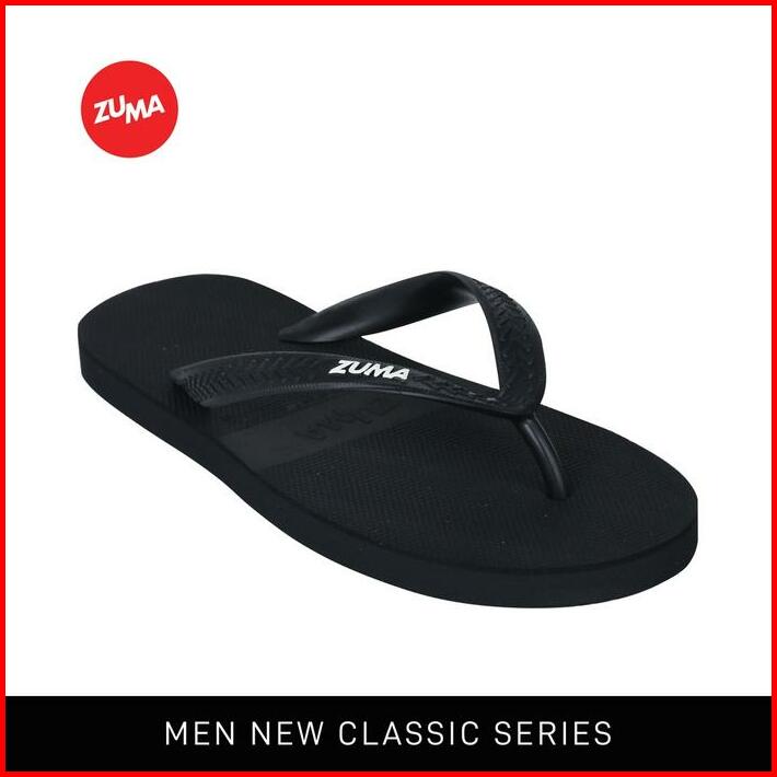 Zuma Men Classic 1 Jet Black Sandal Jepit Pria Karet Polos Hitam