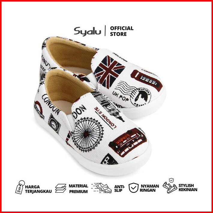 Syalu Sepatu Anak Unisex Slip On Motif London Bahan Kanvas