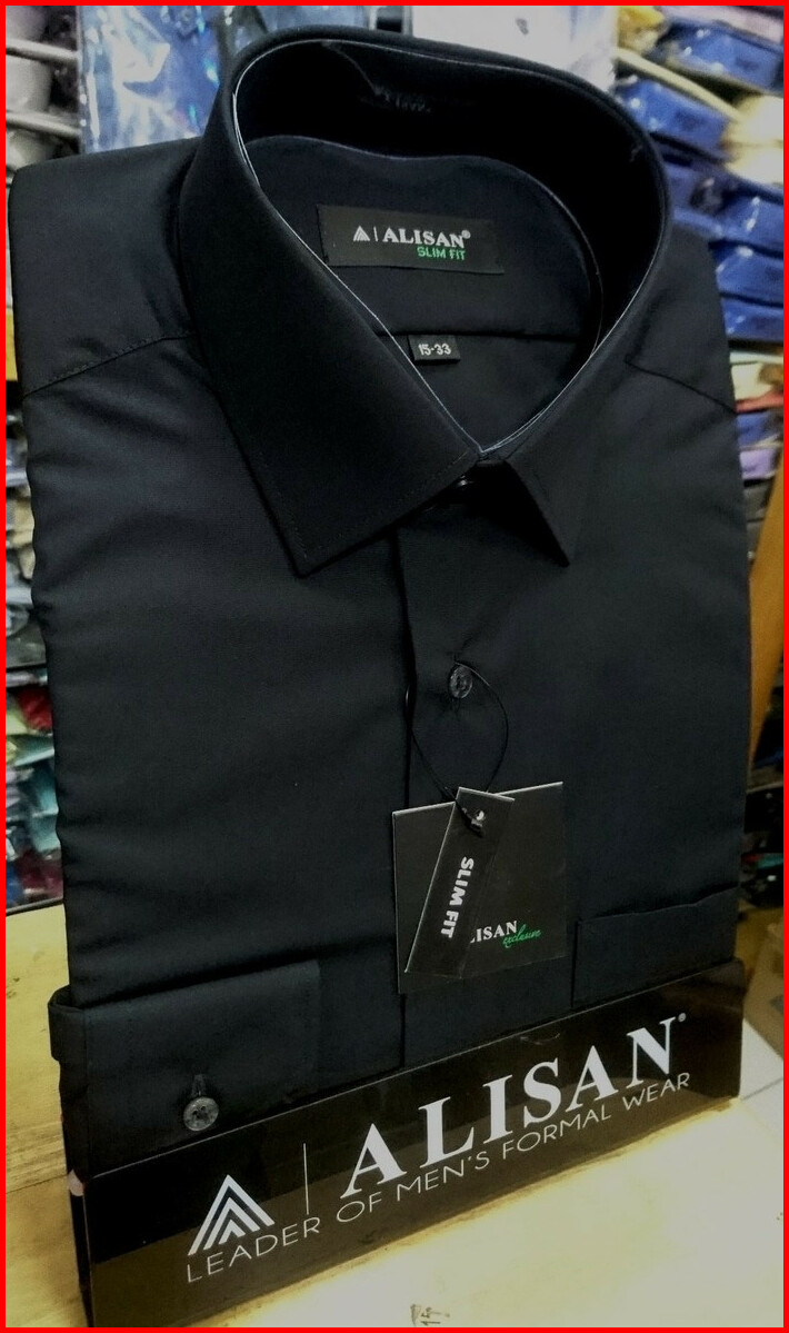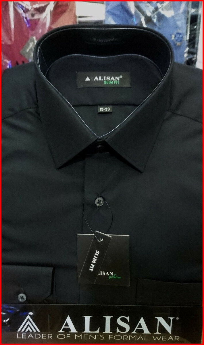 Alisan Kemeja Polos Slimfit Lengan Panjang Hitam 14 5