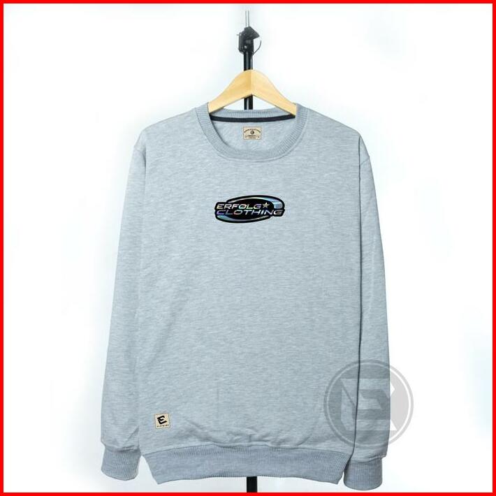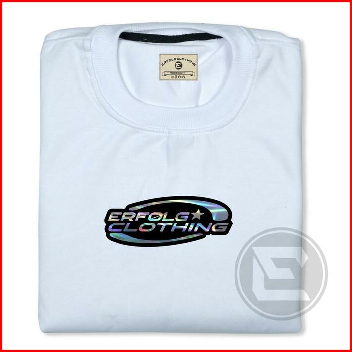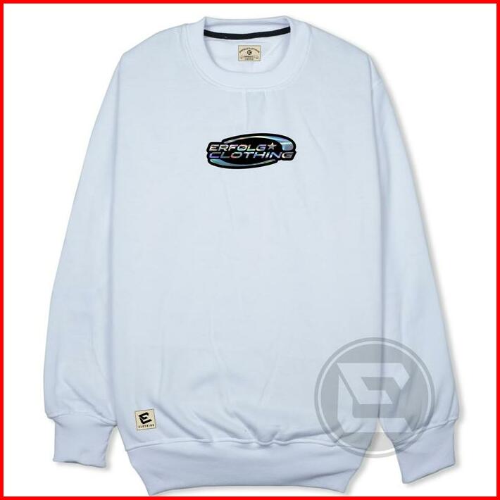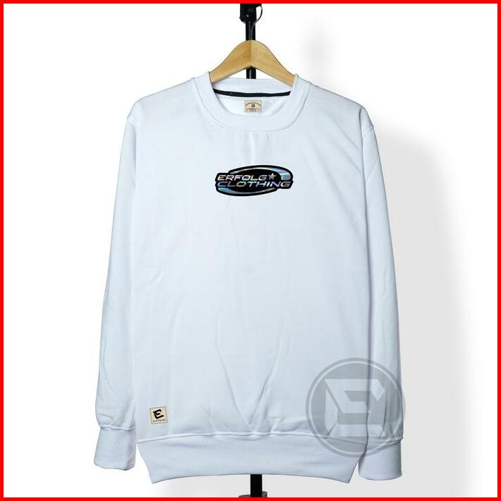 Switer Oblong Pria List Sablon Print Simpel Sweater Crewneck Cowok Cewek Warna White Putih Motif Erfolg Hologram Suiter