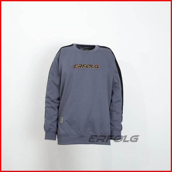 Erfolg Sweater Crewneck Pria Wanita Full Bordir Timbul Kombinasi Lengan Panjang Sweatshirt Cowok Cewek Unisex Distro Lok