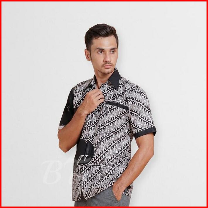 Batik Trusmi Hem Kemeja Pria Lengan Pendek Motif Parang 1 2 Hitam Dng Untuk Kerja Baju Panjang Katun Seragam Kain Navy